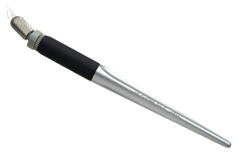 NT's Precision swivel knife has a high-quality noncorrosive zinc chuck, a light aluminum diecast holder with a nonslip cushioned grip. Unique art knife is designed so that the blade can rotate 360 degrees on its axis and follows precisely in the direction of the hand movement to cut perfect smooth curves. It's as easy as drawing curves with a pen and works perfect for hobby projects and artisanal projects. Includes (5) 30 degree blades and a protective blade cap. The blade used in this professional swivel craft knife is made of high quality carbon tool steel and produced through multiple stages of precise process to obtain the ultimate sharpness and optimum edge-retention. Holder is made from 100% post consumer recycled material. Made in Japan.